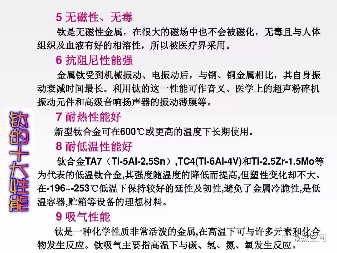 鈦的蘊(yùn)藏量十分豐富,在地球上鈦的儲置約占地殼總重的0.61%,在所有元素中占第十位,居于氧、硅、鋁、鐵、鈣、鈉、鉀、鎂、氫之后,按金屬元素計,為第7位;在常用金屬中則僅次于鋁、鐵和鎂,占第四位;比銅、鎳、鉛、鋅的總和還多十余倍。但由于它的高溫性質(zhì)特別活潑,很難提純,因此金屬鈦直到二十世紀(jì)四十年代才生產(chǎn)出來。第二次世界大戰(zhàn)后首先在真空爐中成功地用鎂還原四氯化鈦獲得了海綿鈦,工業(yè)上開始少量應(yīng)用。冶煉技術(shù)一經(jīng)突破并投入工業(yè)生產(chǎn)后,這種新材料迅速受到人們的重視。隨著鈦材需求量的增加,鈦及鈦合金的產(chǎn)量一定會有大的增長。